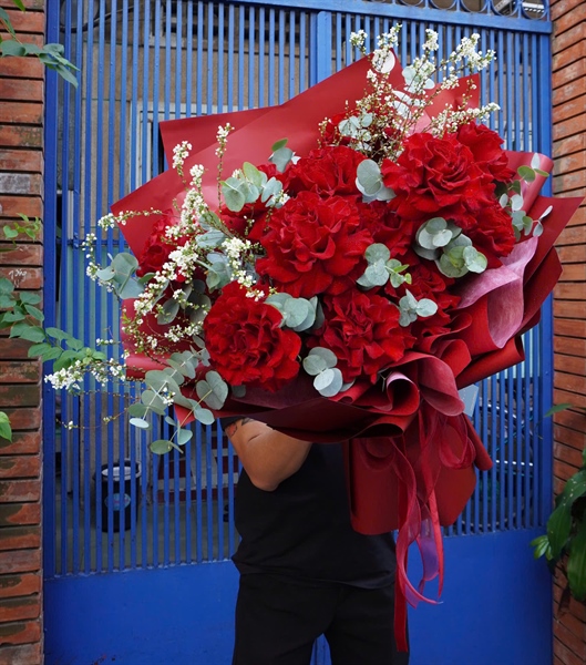 12 HỒNG HEART LẬN CÁNH MIX TUYẾT MAI, GIẤY ĐỎ