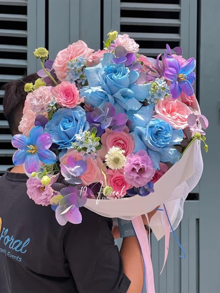 TULIP XANH NHUỘM MIX HỒNG XANH BLUE, BÓ TRÒN