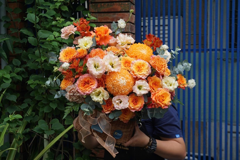 Giỏ hoa tone cam