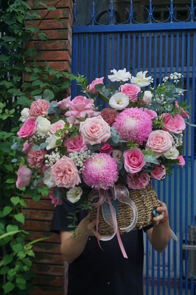 GIỎ HOA TONE HỒNG, CÚC MẪU ĐƠN HỒNG