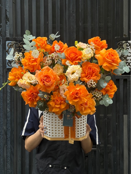 GIỎ HOA TÔNG CAM, CAM QUỐC VƯƠNG MIX HOA PHỤ