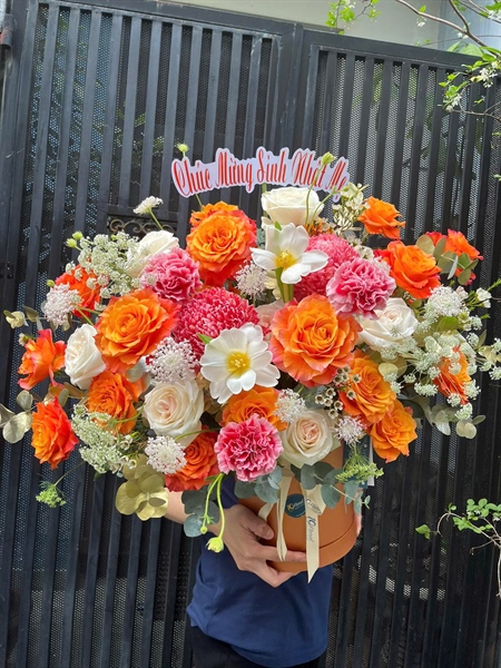 HỘP HOA TONE CAM- TRẮNG- ĐỎ