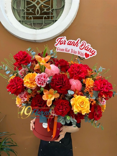 HỘP HOA TONE ĐỎ CAM