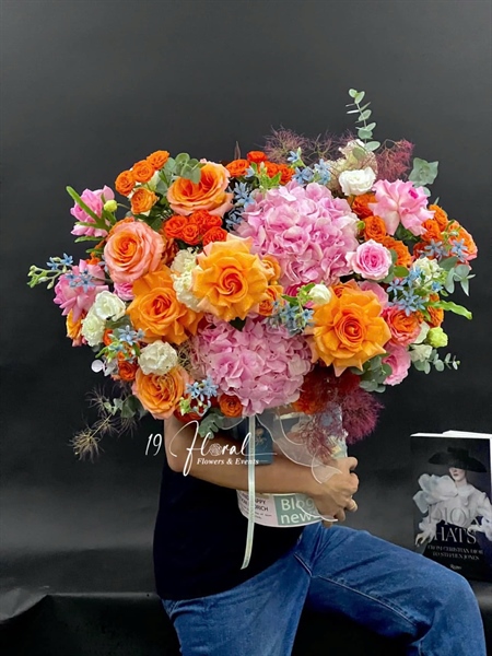 HỘP HOA TONE HỒNG CAM , CTC HỒNG
