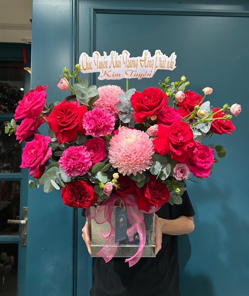 HỘP HOA TÔNG ĐỎ HỒNG, CÚC MĐ, PINK FLOY VN ,ĐỎ Ô VÀ HOA LÁ PHỤ