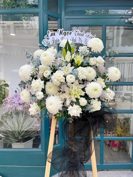 Kệ hoa chia buồn, cúc mẫu đơn trắng , ly kép