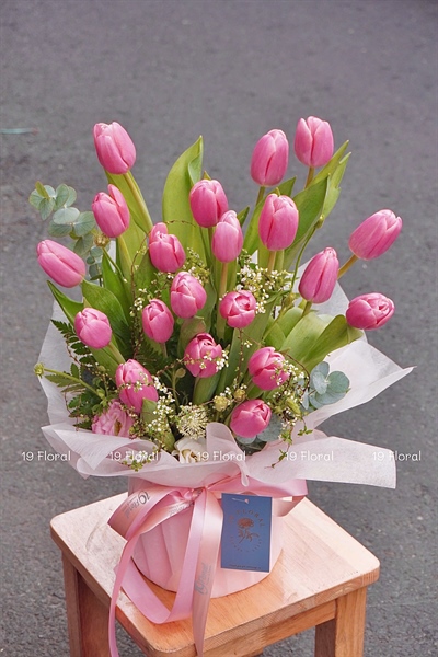 20 CÀNH TULIP HỒNG MIX LÁ PHỤ